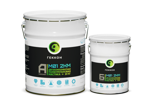 Геккон М01 2КМ - Двухкомпонентная полиуретановая мастика, с сухим остатком не менее 98%, не имеет запаха и не воспламеняется, т.к. в составе отсутствует растворитель. Наносится слоями, хорошо ложится, в том числе на вертикальные поверхности. Отлично подходит для гидроизоляции фундаментов.